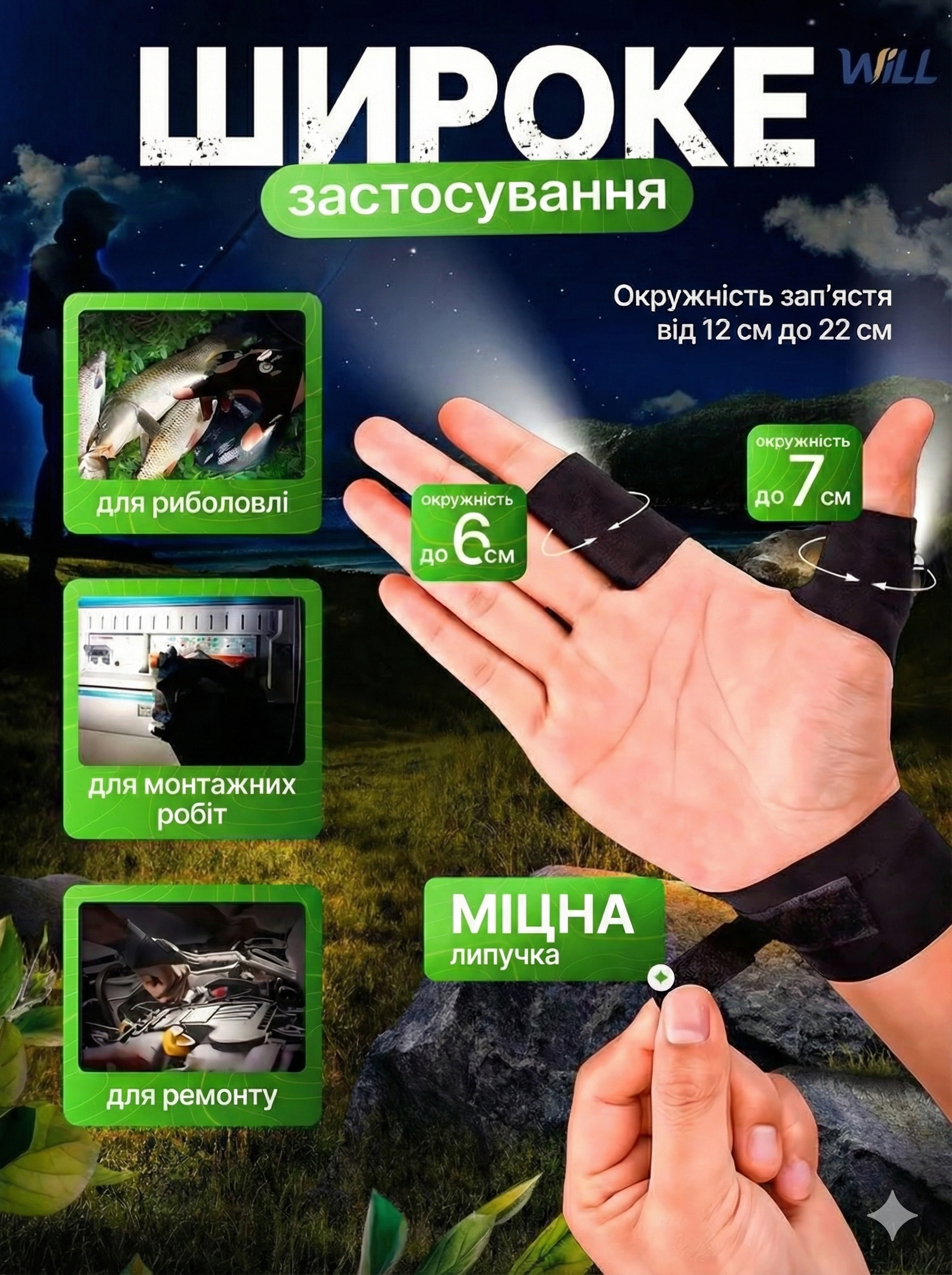⚡ Працюють від двох батарейок CR2016, яких вистачає на довгий період роботи. Кріпляться еластичним ремінцем із фіксацією — підходять на будь-яку руку та легко регулюються. Компактні, легкі та зручні у використанні вдома, на роботі чи у походах.