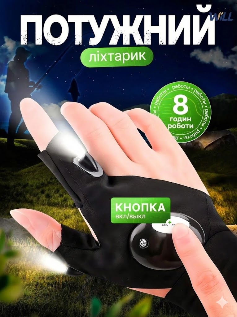 🛠️ Рукавички з підсвічуванням Hand-Free Light — це компактний інструмент, який звільняє руки та дає можливість працювати навіть там, де світла майже немає. Просто одягаєш — і два яскраві LED-ліхтарики підсвічують саме ту зону, де знаходяться пальці.